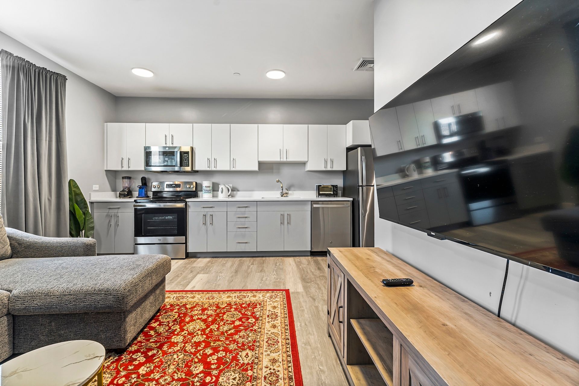 - Fully equipped kitchen.